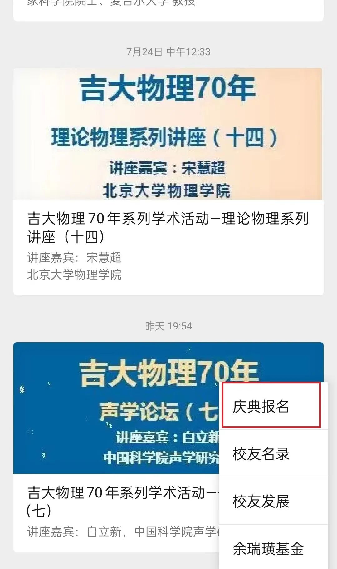 为更好服务校友回校参加活动,现已开通吉大物理70年庆典注册报名窗口,报名截止日期9月17日,欢迎校友报名参加。