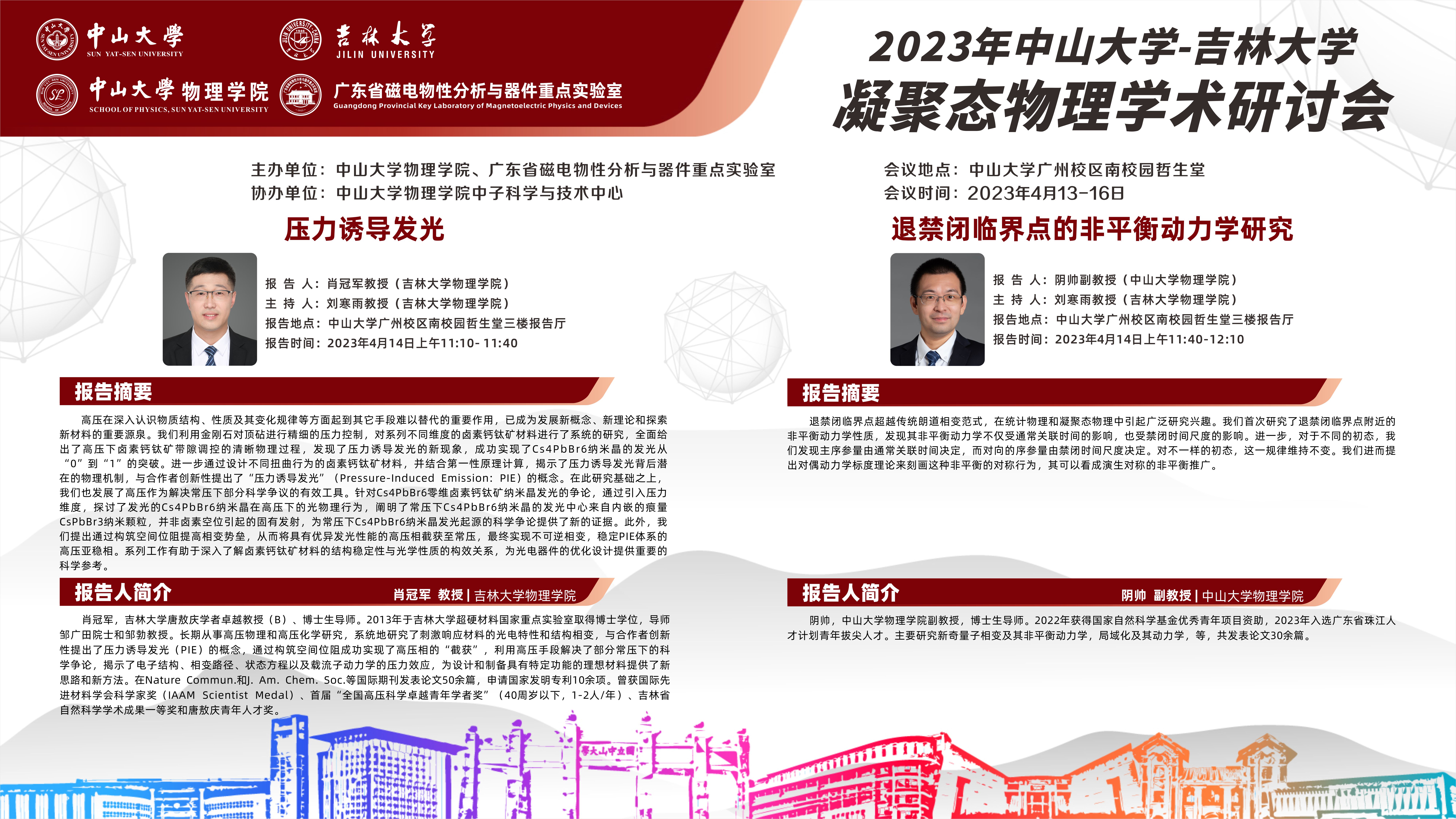 2023年中山大学-吉林大学凝聚态物理学术研讨会是由中山大学欧洲杯
