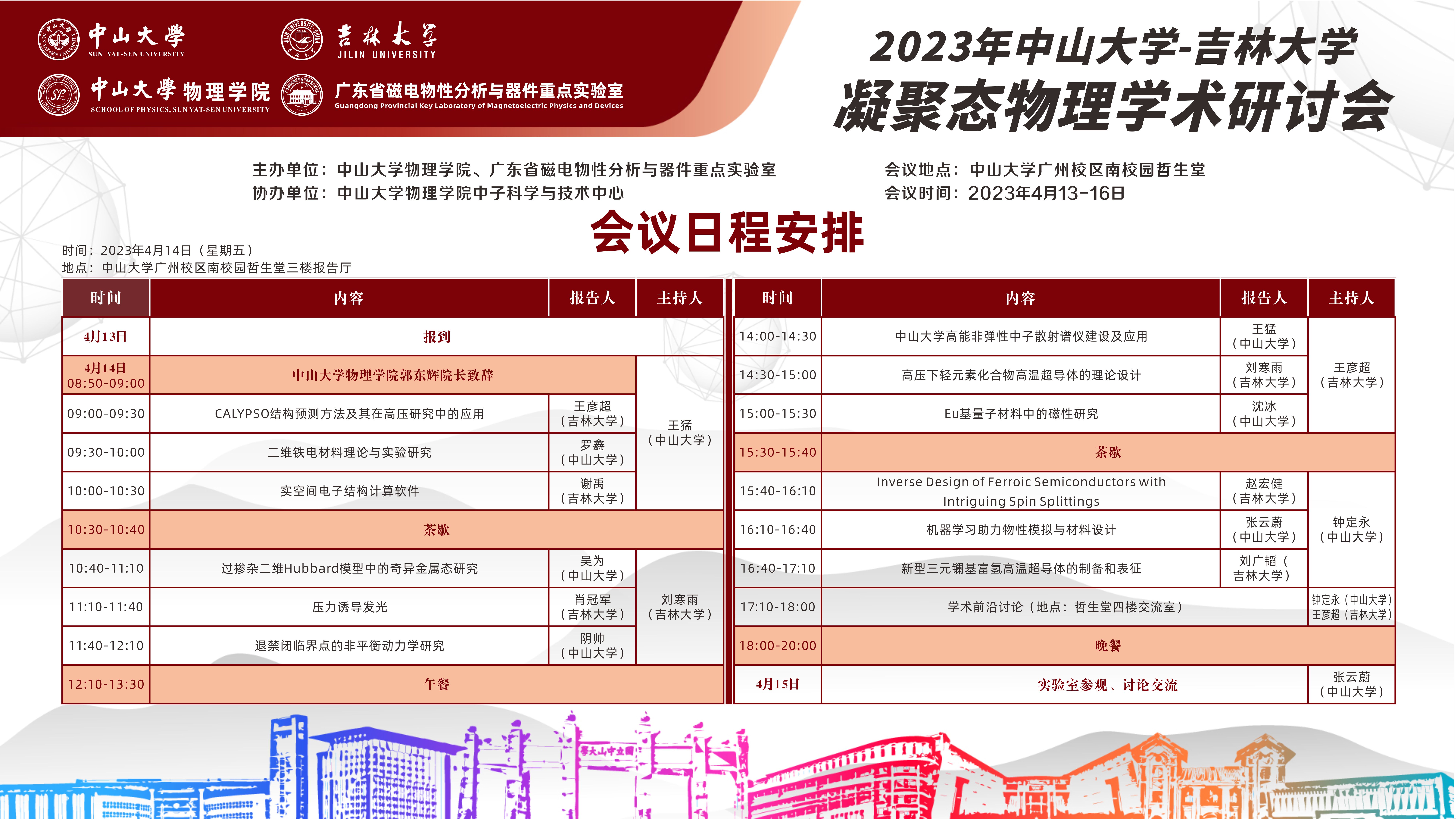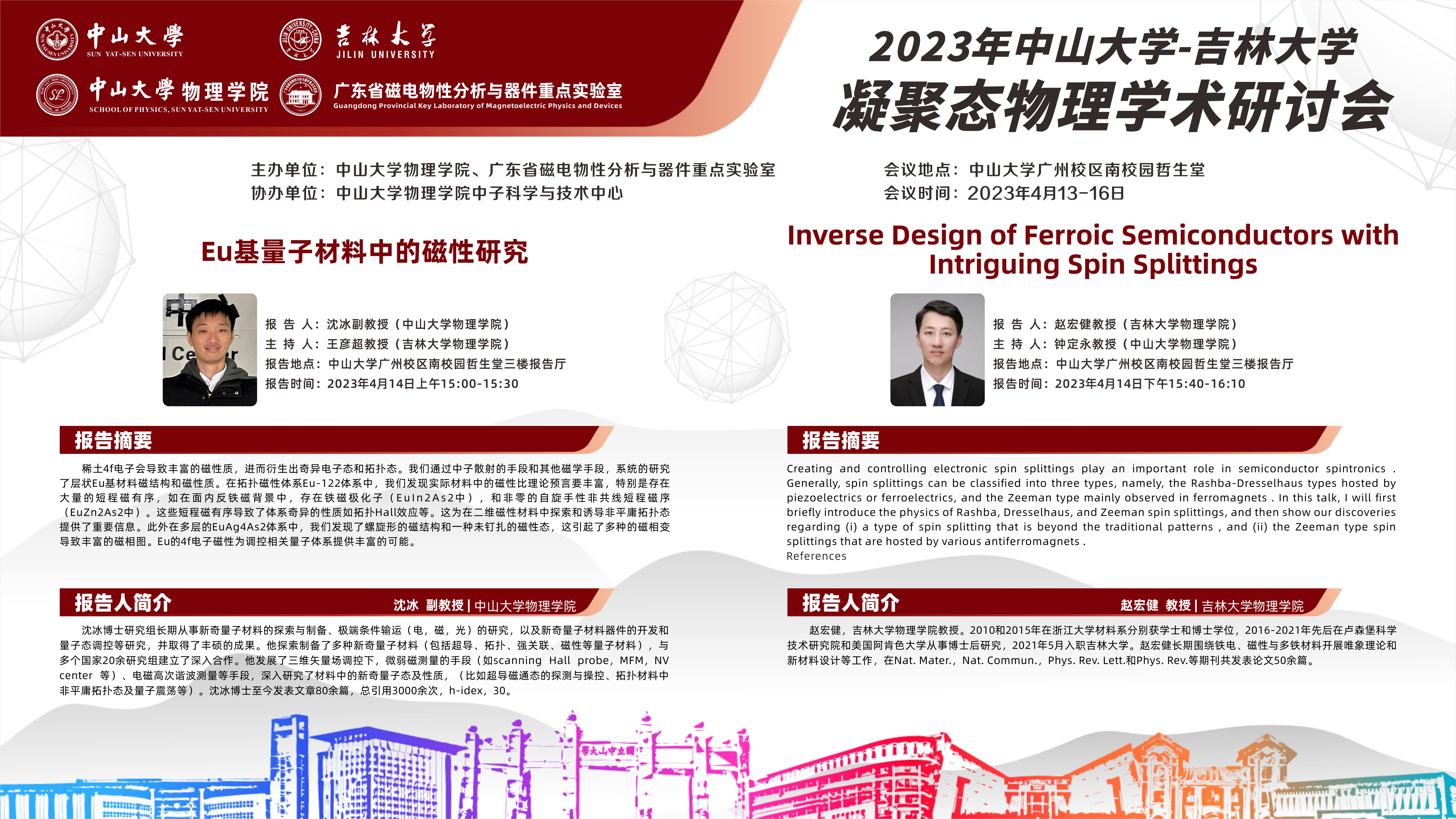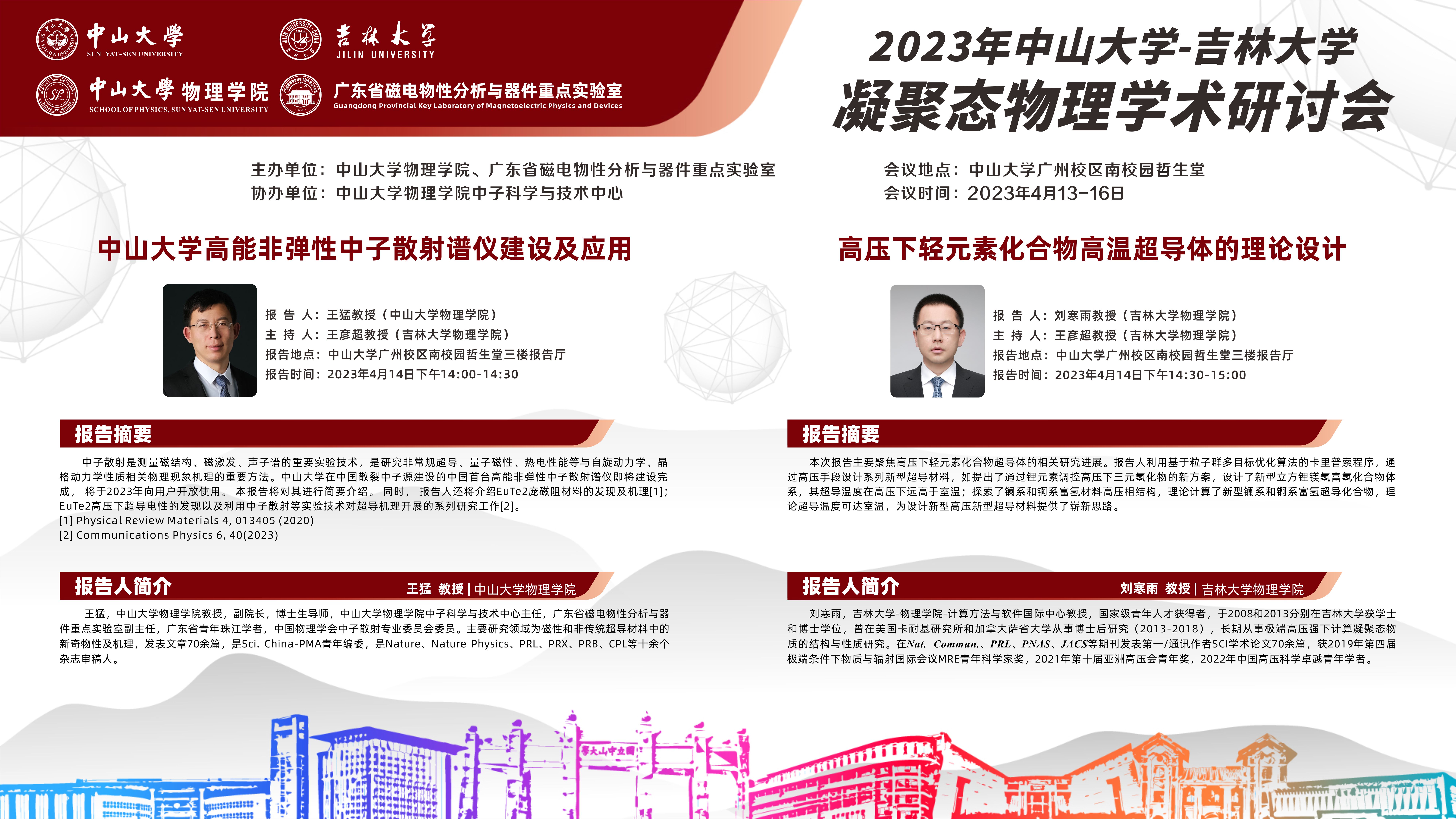 2023年中山大学-吉林大学凝聚态物理学术研讨会将于4月13-16日在中山大学广州校区南校园召开,本次研讨会由中山大学欧洲杯