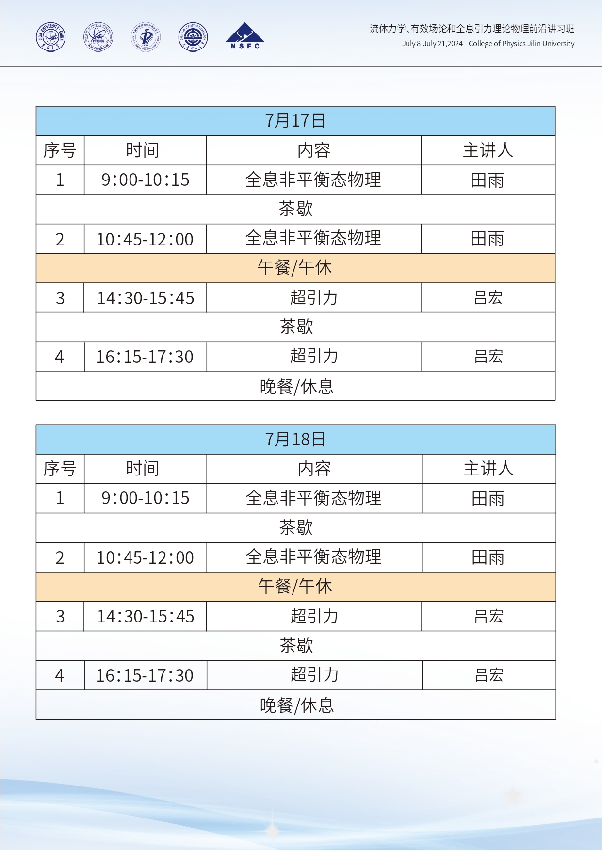 流体力学、有效场论和全息引力理论物理前沿讲习班第二轮通知