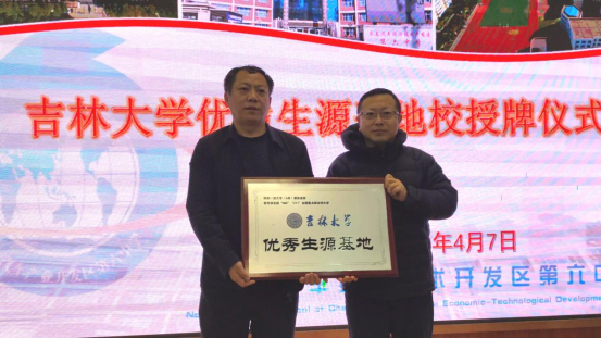 院长邹勃、副院长王海军、院长助理王鑫等一行赴长春市汽开区六中举行“吉林大学优质生源基地”签约授牌仪式。汽开区六中校长李德文、党委书记施力、副校长张泽宽、相关教师代表、高三红旗班AF班家长代表,以及高二红旗班AF班全体学生参加了本次签约授牌仪式。
