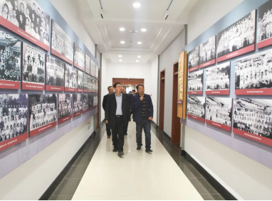 看到展墙上一张张熟悉的面孔,何军不时分享着背后的故事。何军深情回忆了余瑞璜、吴式枢等老一辈创业先贤生前轶事,认真观看了杰出校友题词。在所在年级毕业合照前还特意合影留念。