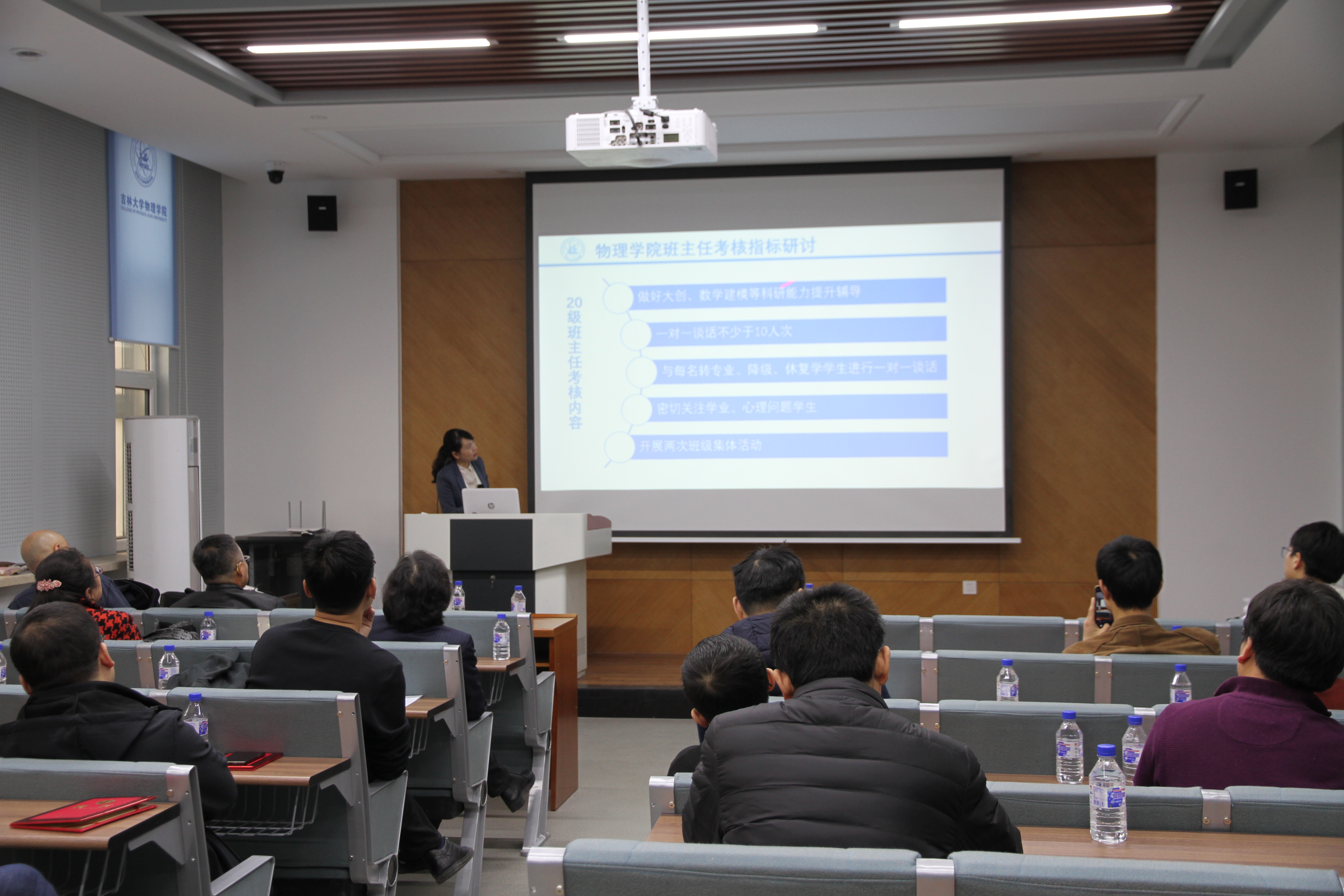 工作会上,孟文卓书记首先为2016-2019级班主任老师颁发考核证书,为2020级班主任老师颁发聘书。随后,邀请上一年度优秀班主任代表郭星原、李剑、杨守文三位老师分享班主任工作心得。三位老师充分发挥 “陪伴教育”的学生工作理念。其中郭星原老师经常组织带领学生徒步,并在徒步过程中与学生分享物理小常识,言传身教勉励学生要将书本上的知识积极应用于生活。李健老师坚持“多交流、多互动”的工作理念,谈到即使是在国外访学和疫情期间,也依然保持与学生线上日常交流,及时把握学生思想动态。杨守文老师首次担任班主任,他提出主动参与到学生的生活中去是做好班主任工作的关键,从班主任主动参与到学生主动接纳,是自身工作方法提升的过程,也是学生们感受到班主任关心与关爱的过程。