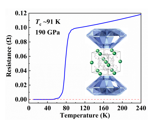 图1:高压条件下三元富氢高温超导体(Ce,Sc)H11的晶体结构和超导电性