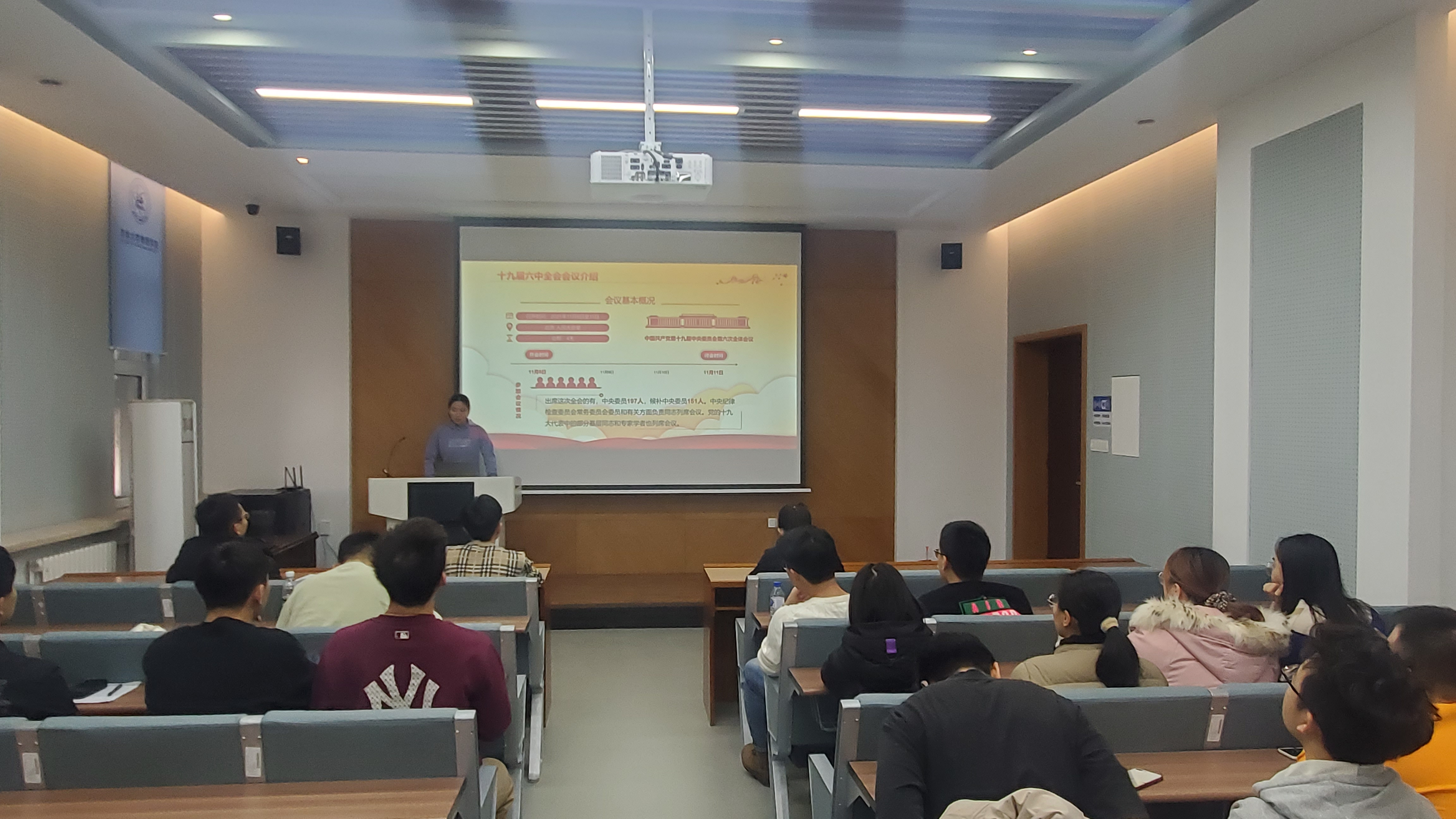 会议第一项,由刘扬老师和张羽老师开展学习动员,号召各位参会同学积极主动学习党的第十九届六中全会精神,并在会后要发挥标杆榜样作用,积极带动身边同学学习党的第十九届六中全会精神。