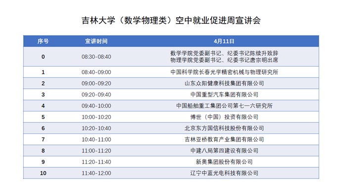 联合召开吉林大学分行业空中就业宣讲活动(数学物理类)。本次空中宣讲由参加线上双选的23家代表性单位参与,其余单位宣传材料实时推送,累计观看人数突破1000人,充分保障我院毕业生高质量充分就业。
