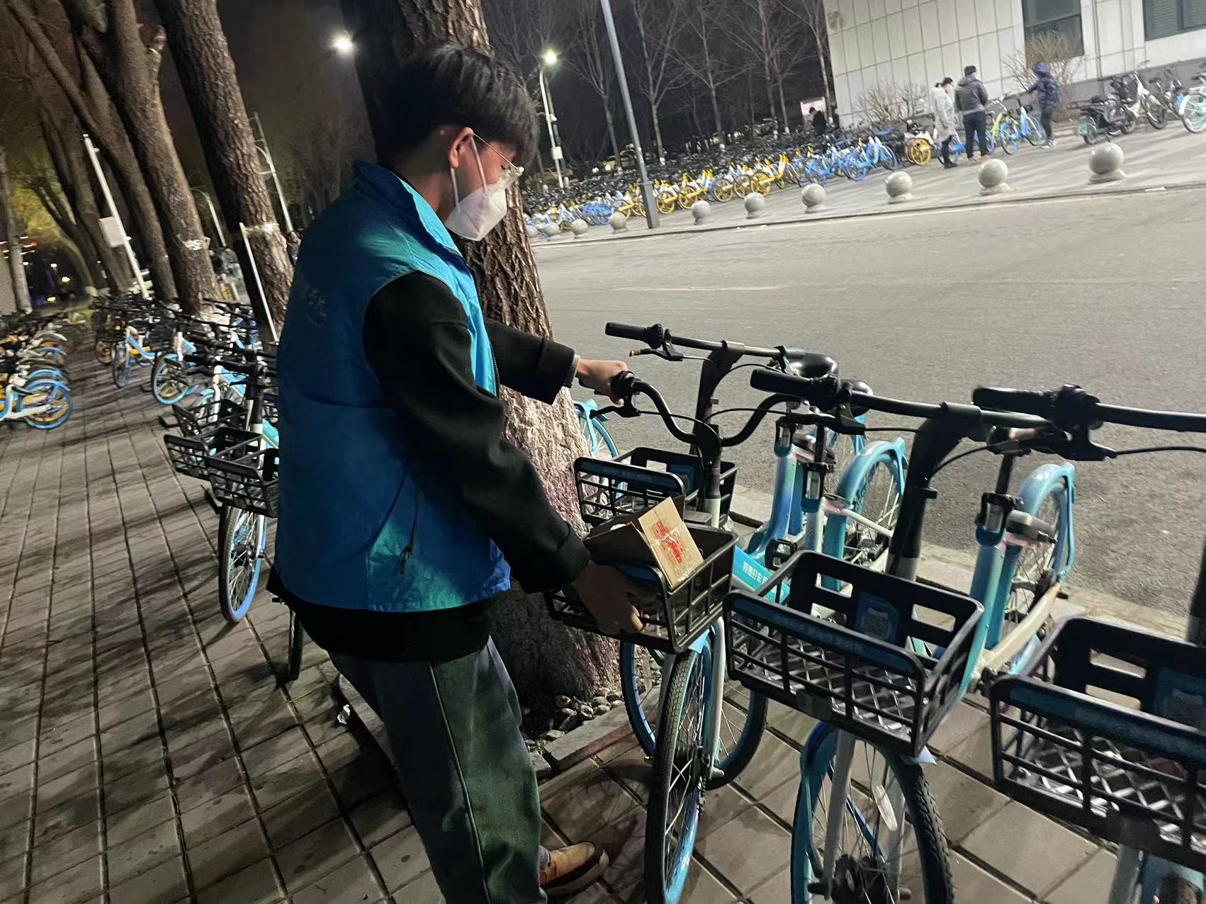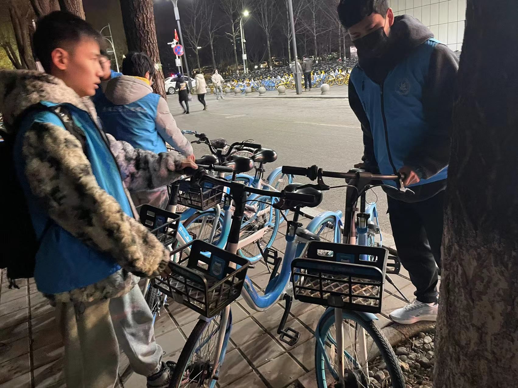 2022级7班同学们在结束了一天繁忙的学习任务之后,主动前往共享单车摆放较为混乱的日新楼附近,积极将共享单车摆放整齐,助力美丽校园创建,为同学们创造舒适便利的学习生活空间,为学校整齐划一的环境贡献一份微薄之力。